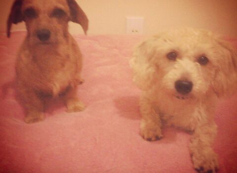 Olá pessoal, meu nome é Chiquinha, e esse ao meu lado na foto, de pelo claro, é o meu filhote...