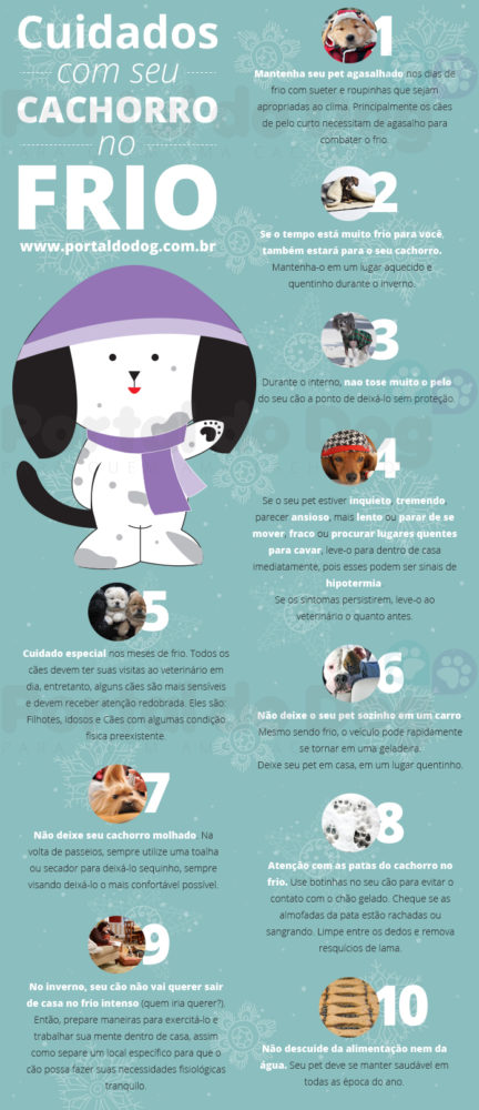 5 – Cuidado especial nos meses de frio. Todos os cães devem ter suas visitas ao veterinário em dia, entretanto, alguns cães são mais sensíveis e devem receber atenção redobrada. Eles são: Filhotes, Idosos e Cães com algumas condição física preexistente.