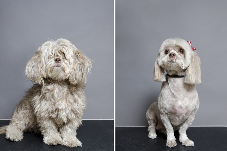 A fotógrafa Sophie Gamand criou a série Metamorphosis para mostrar as transformações que os cachorros passam após serem tosados.