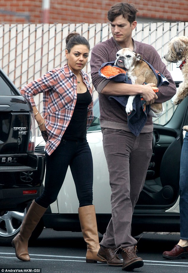 Na companhia da namorada Mila Kunis, Ashton comentou com os fotógrafos presentes que o seu cachorro estava muito ruim de saúde e precisaria ser eutanasiado. A situação específica da saúde do cachorro não foi divulgada.