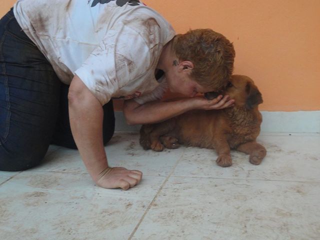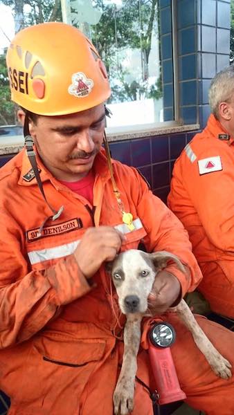Voluntários, o Corpo de Bombeiros, a Guarda Municipal, a Polícia Militar e cães policiais estão trabalhando juntos para resgatar os animais que ficaram presos no meio de tanta lama.