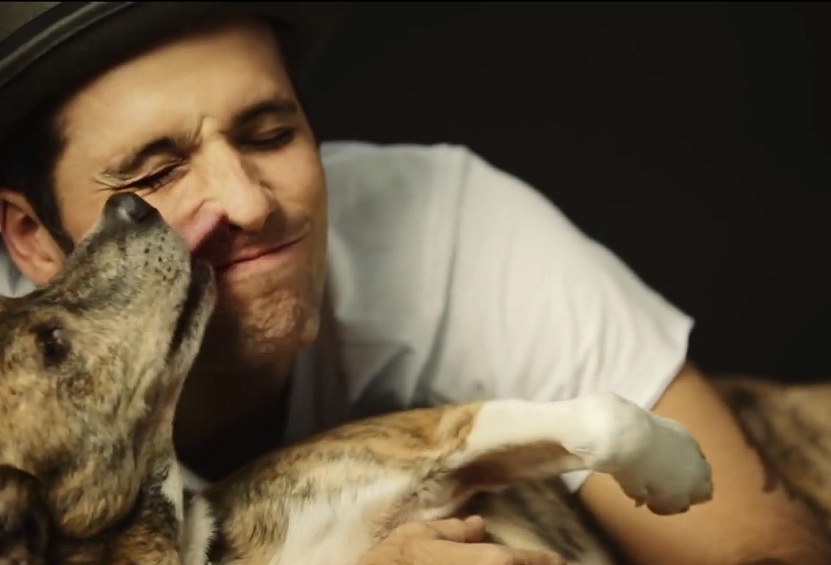 Júnior Lima com cachorro. (Foto: Reprodução / Youtube / Ampara Animal)
