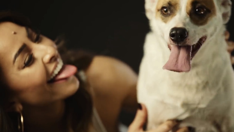 A divertida Sabrina Sato com cão. (Foto: Reprodução / Youtube / Ampara Animal)