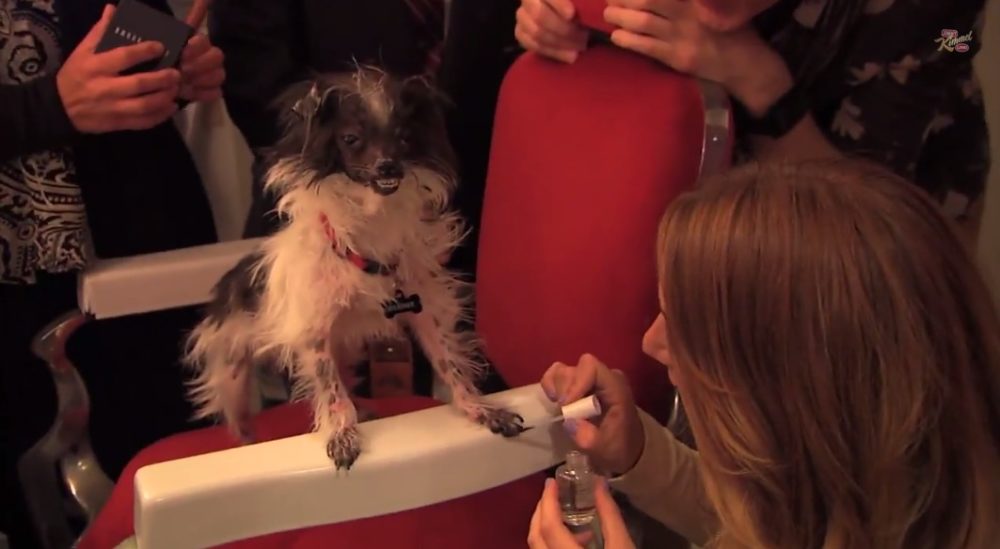 Peanut recebeu tratamento com manicure. (Foto: Reprodução / Youtube / Jimmy Kimmel Live)