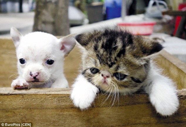 Os quatro gatinhos já encontraram um lar, mas ninguém se interessou pelo cão. Assim, Weinuan falou que vai ficar com ele.