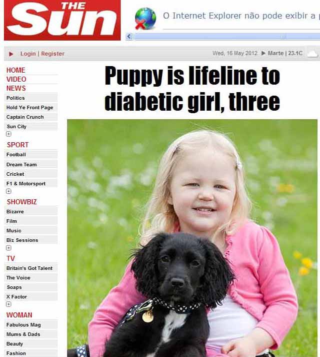 Após adquirir o cão Jodie recorreu a uma página do Facebook para obter dicas sobre como treiná-la. Esperta, a cachorrinha aprendeu logo a farejar os sintomas de níveis baixos de açúcar no sangue, que podem ser sudorese e náuseas. Os níveis de açúcar no sangue em diabéticos como Olivia-Mae podem ser afetados por refeições, emoções, atividade física, alterações hormonais e até mesmo o clima.