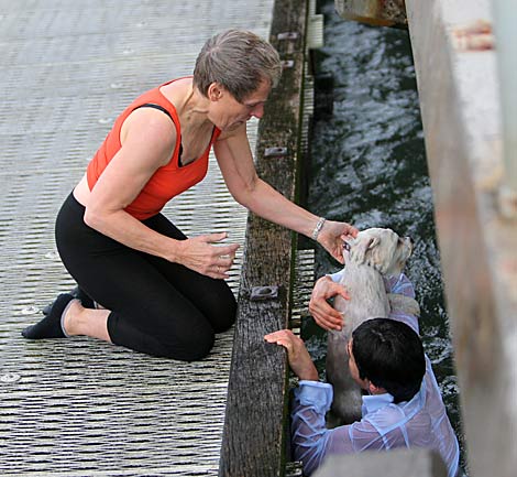 Um cachorro da raça Maltês caiu no mar em Melbourne, um garoto viu a dona desesperada e pulou no mar para resgatar o animalzinho. Veja as imagens abaixo: