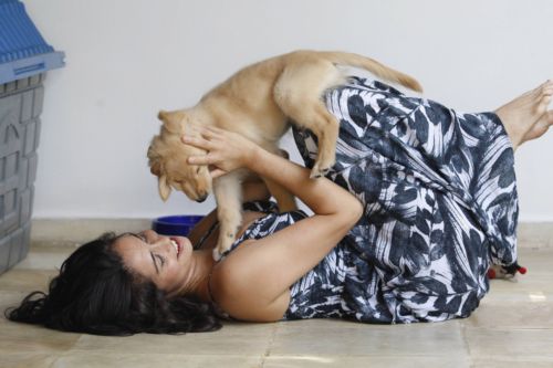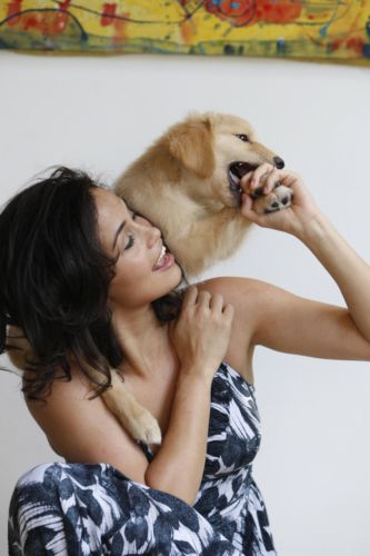 Conheçam Dom, cachorro da raça Golden Retriever da atriz Nanda Costa, no ar na novela Salve Jorge. As fotos, tiradas em 2012, são da atriz e de seu pet em uma grande brincadeira.