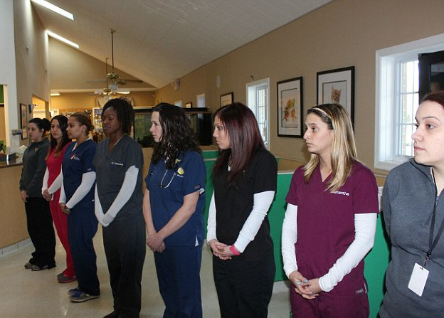 Policias humanos e caninos e veterinários alinharam-se no caminho que Judge foi percorrendo, prestando continência e dizendo adeus a esse grande K9.