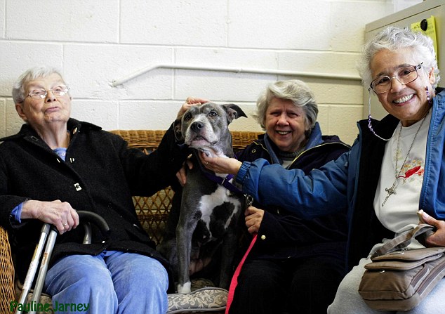 Irmã Veronica Mendez declara que elas souberam exatamente que haviam achado a escolhida quando viram Remy, uma Pit Bull de 9 anos.