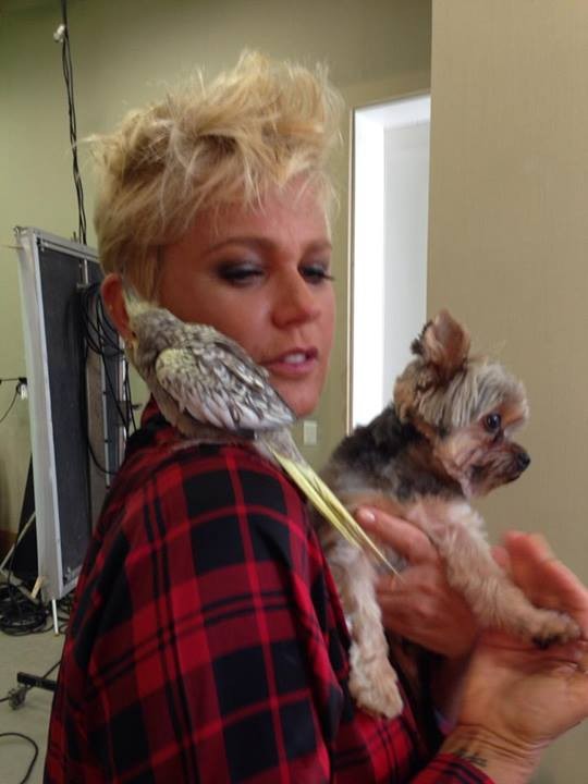 Xuxa usou sua conta no Facebook para compartilhar com seus seguidores um momento antes da gravação de seu programa TV Xuxa no qual ela aparece na ótima companhia de uma calopsita e um cachorrinho que parece ser o Dudu, pet de Xuxa da raça Yorkshire Terrier.
