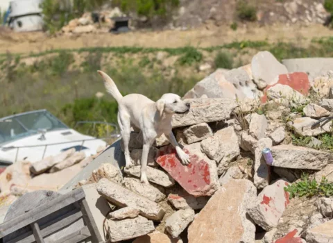 Golden retriever resgatado vira cão de busca em desastres. Veja essa transformação aqui!